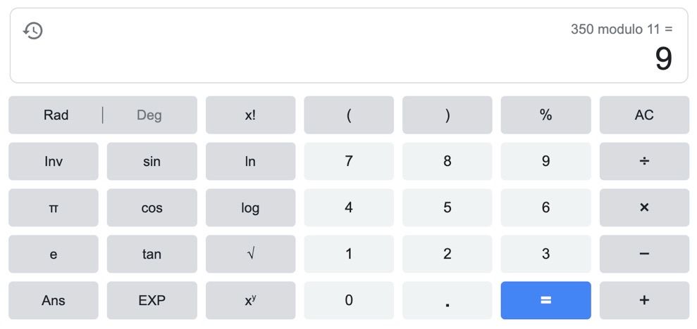 350 mod 11